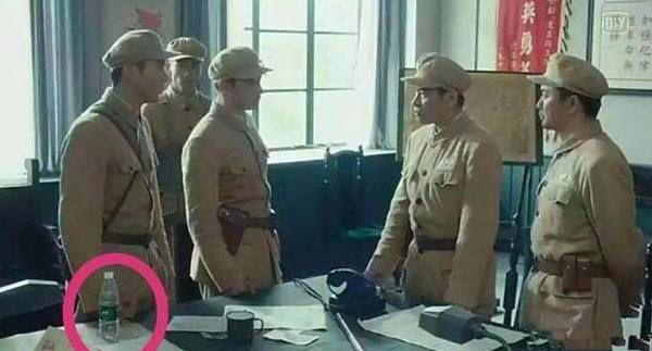 ▲最常見的穿幫礦泉水瓶了,每個劇組總有那麼一兩個忘記在旮旯的水瓶。這部劇桌子上那麼顯眼的水瓶。