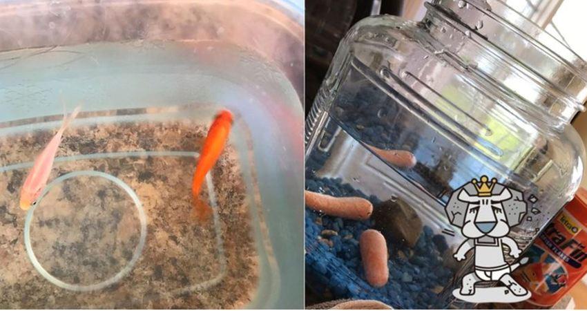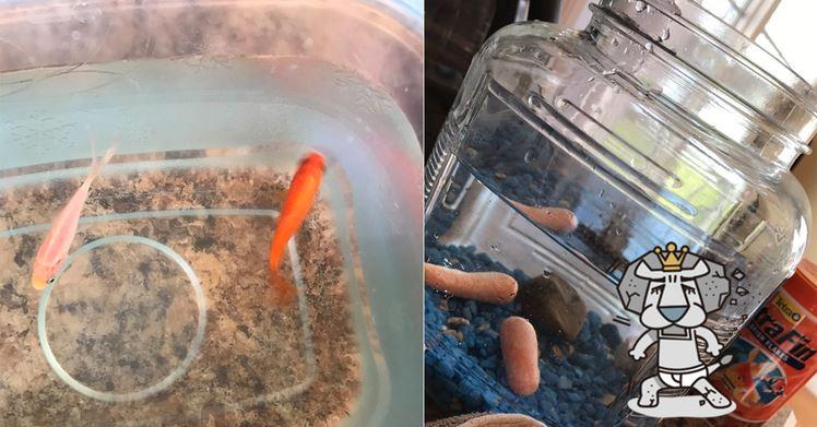 他表示,為了測試妹妹有沒有用心養金魚,他偷偷把2條金魚換成了2根胡蘿蔔條,沒想到妹妹….