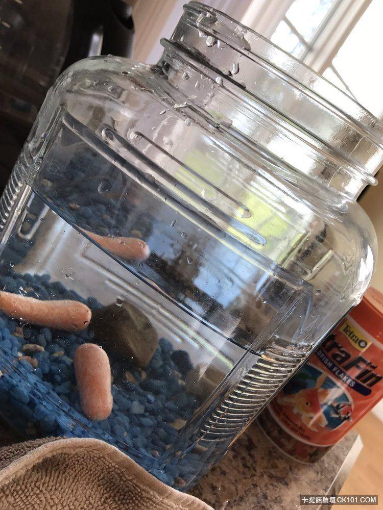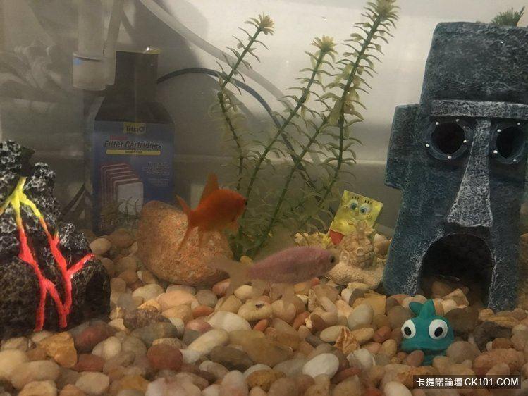 據原Po貼出的照片,這2條金魚正被他安安穩穩的養在另一個地方,過得比以前還奢侈…