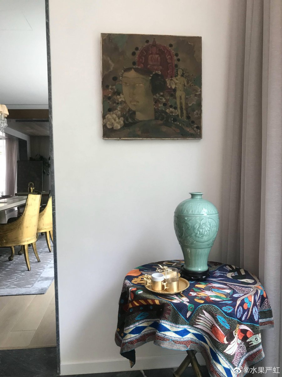 張蘭在牆壁上展示了不少藝術作,連桌子上也擺放著觀賞用的古董花瓶,讓人感覺如置身藝術館。