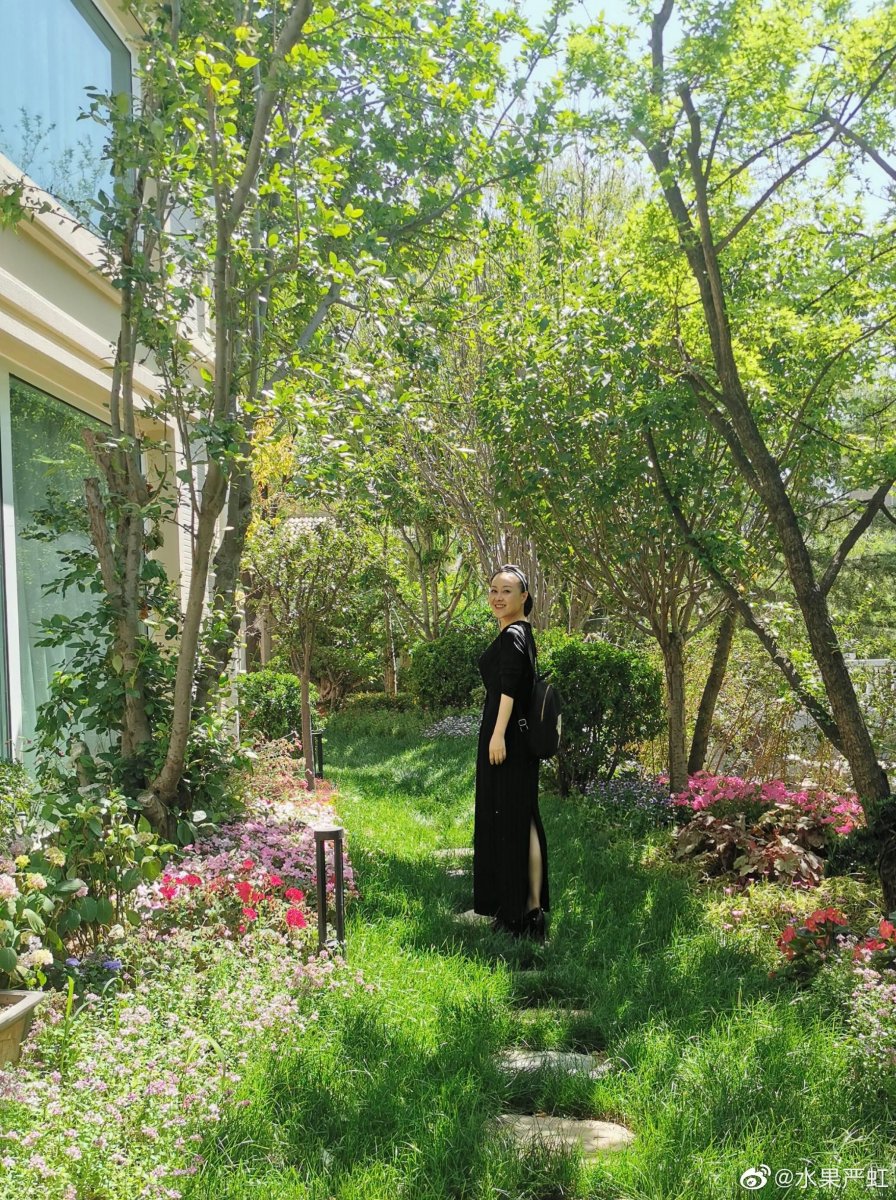 從照片上可以看到,張蘭的家擁有一個超級大花園,樹木蔥蘢,花木扶疏,打理得非常好。
