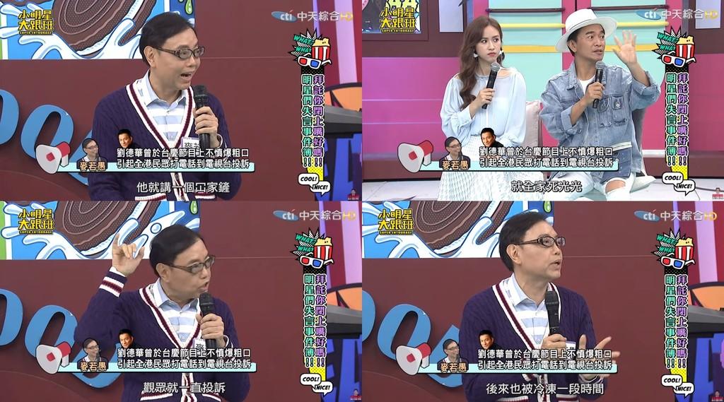 由於當時節目很多人收看,觀眾聽到他這樣說,馬上打電話過去抗議,結果各大媒體報導下,讓電視台被罰款10萬港幣,劉德華也特地上節目、登報道歉,演藝事業更被冷凍起來。