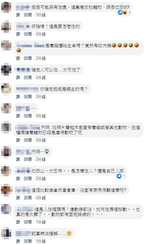 除此之外,屋內也有許多的狗籠、貓砂盆以及誘捕工具,讓網友擔心的說「雖然我覺得這比較像是養殖場,但是真沒見過這麼亂的養殖場,連養雞都有難度吧,應該是荒廢已久的養殖場」、「有貓砂、貓玩具、貓砂盆、誘捕籠,好擔心那些貓,我看留言說他們有繁殖」、「感覺是在裡麵養動物沒住人」、「感覺後麵都給貓咪住,自己沒有住那」、「確定姊姊住,感覺住在裡麵應該是動物,貓狗鳥這類的」、「照片裡有絞肉機,還有貓砂盆,我有點起雞皮疙瘩」。