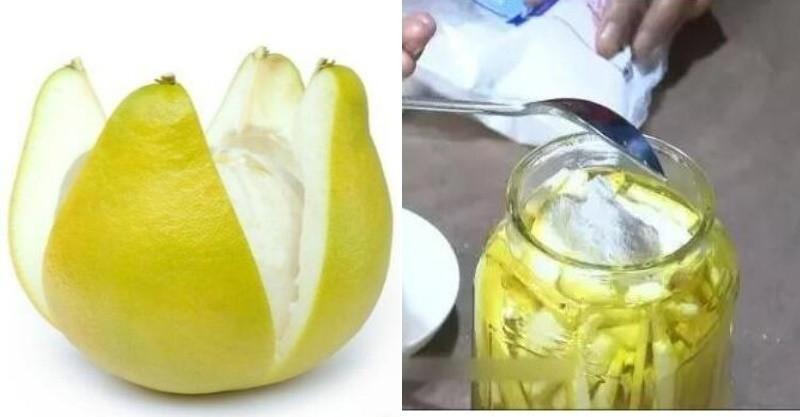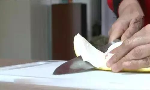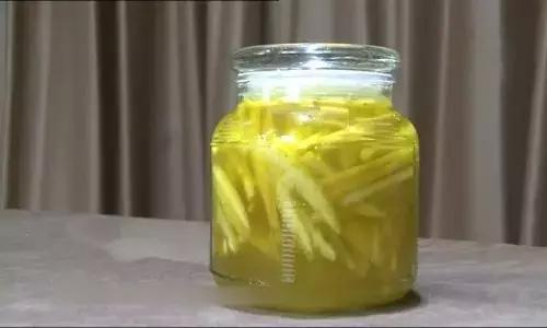 先把柚子皮的白色部分去掉一些,切成絲放進瓶子裏。