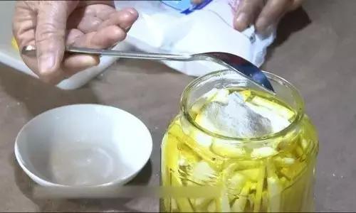 然後倒入沒過柚子皮的清水,再加入一小勺食用鹼。