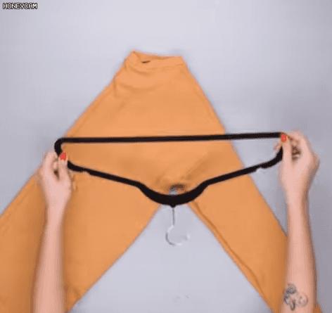 然後將衣架倒置在腋下處,將羊毛衫的袖子和主體部分這樣搭在衣架上。