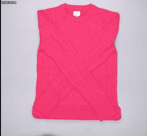 第二步: 將毛衣袖子在中間交叉,然後沿著領口分成三段疊好。