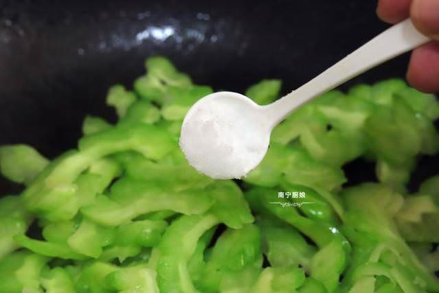 2、苦瓜在下鍋之前一定要放入鹽水中浸泡個15分鐘以上,這樣可以很好的去除掉苦瓜的苦澀味,然後再瀝幹水分下鍋大火快炒,這樣做出來的苦瓜吃起來不僅脆嫩可口,還幾乎沒苦味,十分的下飯。