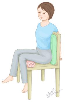 1、找一把可以靠背的椅子,臀部往後坐,靠著椅背。雙手放在椅子背後,背部墊靠墊。