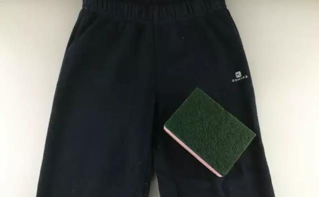 如果有特別頑固的紙屑,就用百潔布粗糙的一麵擦拭衣物。