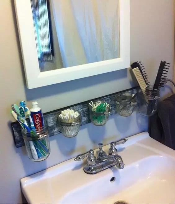 2. 洗臉台:鏡麵櫃、吸盤、罐頭瓶!