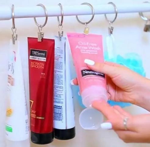 7. 化妝品、洗麵乳 用夾子倒著掛!