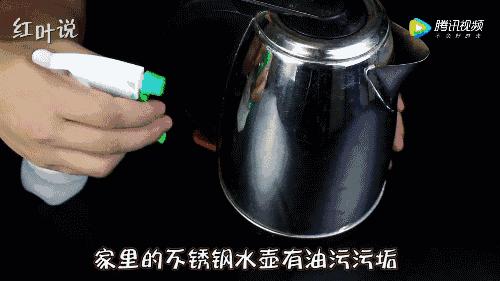 用它來清洗不鏽鋼水壺的汙漬,噴一噴,然後用抹布輕輕一擦,汙垢輕輕鬆鬆就去除了。