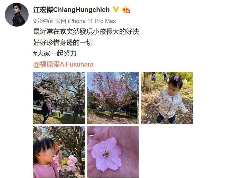 江宏傑曬出照片後,很多網友都表示:「要幸福呀」,還有網友看到爸爸給弟弟戴上櫻花後也表示:「我們不想帶花,想玩球」。