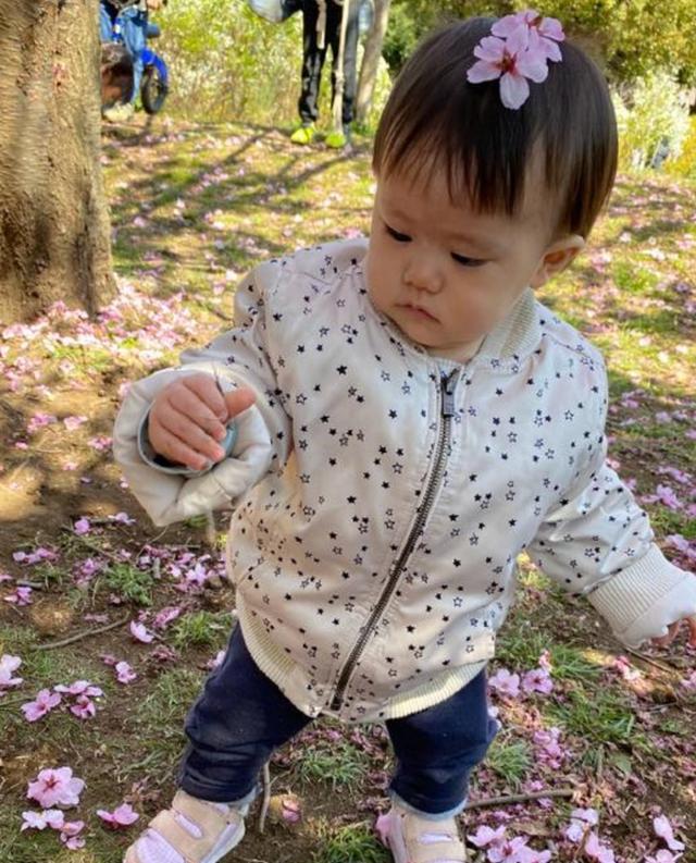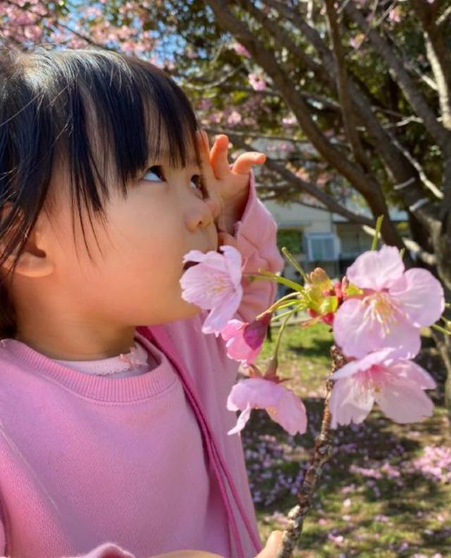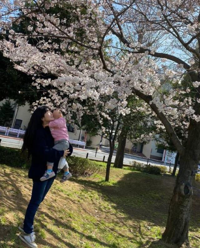 在一張照片中,福原愛抱著女兒站在櫻花樹下,母女二人仰望櫻花,一起享受花海,那畫麵是如此的溫馨。