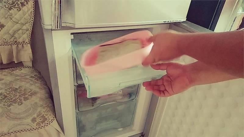 接著把容器放入冰箱冷凍倉裡麵,放20分鐘左右,