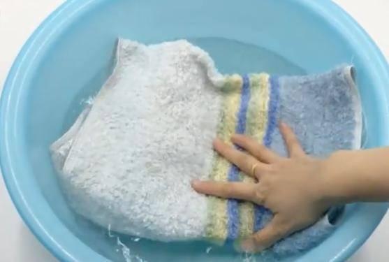 首先我們準備一盆清水,然後將毛巾放入裡麵徹底浸濕(用純棉的毛巾更好哦)