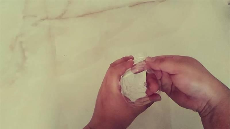 第二個方法,拿一個空塑膠瓶,一麵的中間部位剪掉一塊,再剪去塑膠瓶的上端,