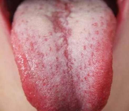 舌苔不規則大片脫落即為地圖舌,這症狀與遺傳有關,後天壓力、過敏、糖尿病、荷爾蒙失調也可能引起。