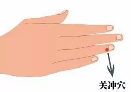 具體方法是:用指甲掐關衝穴,每次掐10秒,放鬆2秒後重複掐按,