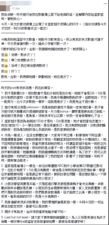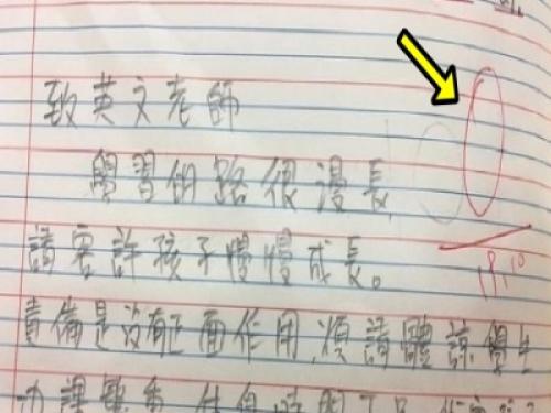 梁小姐見狀不但好好安慰了侄女一番,接著她更在默寫簿上留言給英文老師: