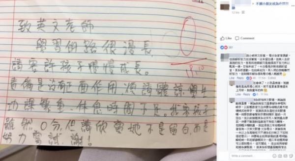 我家孩子雖然0分,但請欣賞她不是留白,而是努力嘗試,謝!」