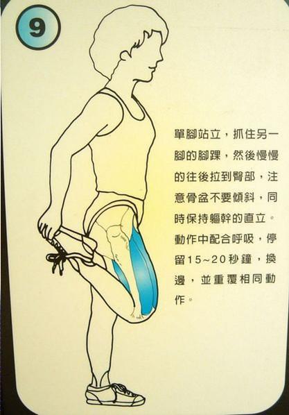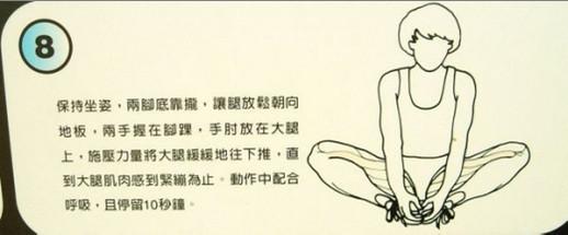 直到大腿肌肉感到緊繃為止。動作中配合呼吸,且停留10秒鐘。