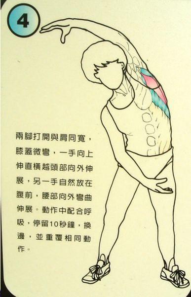 換邊,並重覆相同動作且注意勿過度伸展。