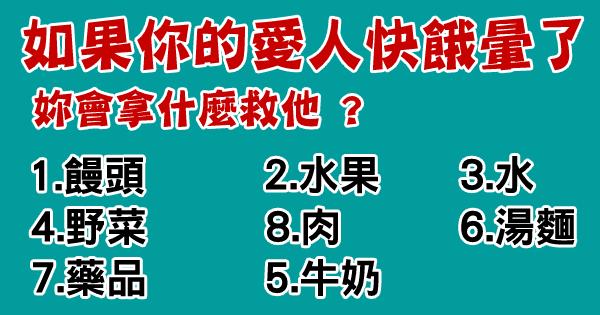 這個測試真的很有趣,如果你的愛人快餓暈了,你會拿什麼救他?