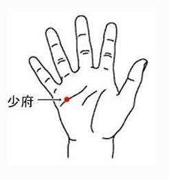這是指少府穴,位置在手掌心,第4指指端之間。