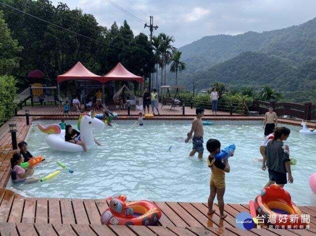 跳進天然無添加的山泉戲水池,立馬消暑透心涼。(圖/呼啦莊園提供)