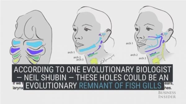 而且全台灣大概有57萬人都有這個小洞洞,這些小洞其實是因為先天的發育異常所導致,通常位於臉頰跟耳朵軟骨之間,有一個醫學名稱叫做耳前廔管,又被稱為耳前竇,這個耳前竇根據生物學家Neil Shubin表示,很有可能是人類演化史中,遺留的魚鰓部分慢慢退化,才有這個小洞的!