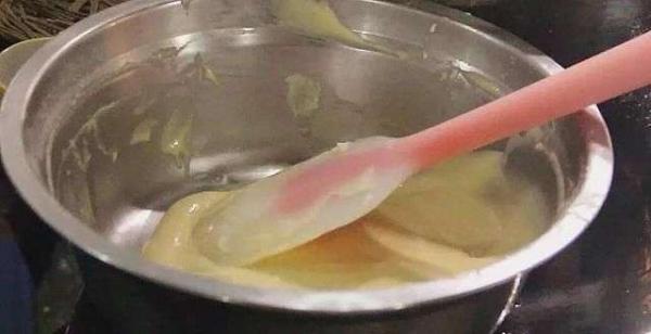 1. 牛奶加熱至80攝氏度,加入色拉油攪拌均勻。