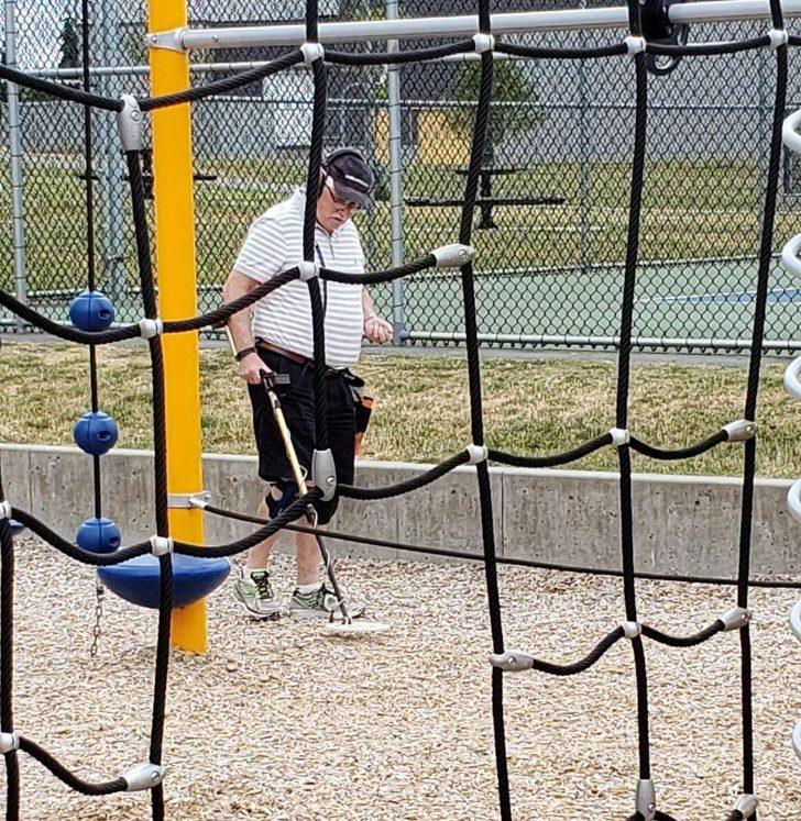 4.「這個老人在操場上用他的金屬探測器,收集所有可能對兒童有害的金屬,雖然他因為這樣賺了一些錢,但他大部分撿起來的垃圾,都是因為擔心孩子們會受傷。」