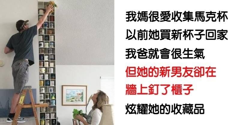 2.「我媽喜歡收集馬克杯,每次當她又買了新的馬克杯回家,我爸就會很生氣,但她的新男友卻自己在牆上釘櫃子,展示所有她的收藏品。」