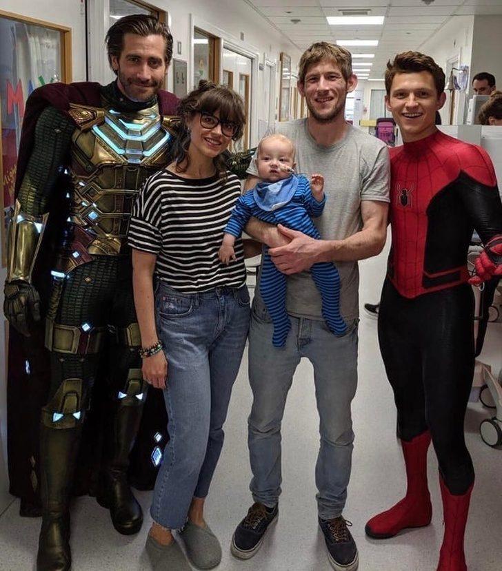 5.「傑克吉倫霍(Jake Gyllenhaal)和湯姆霍蘭德(TomHolland)穿著劇中的戲服,到倫敦兒童醫院探視病童。」