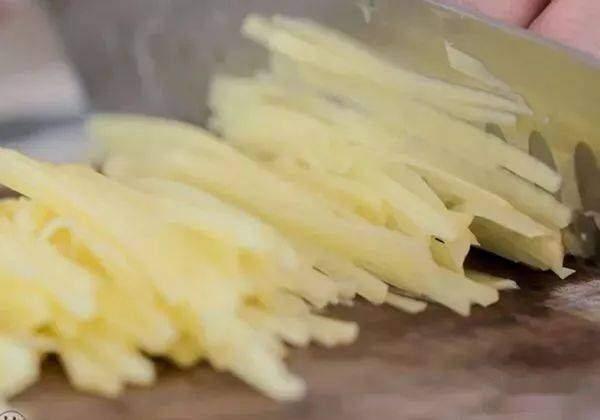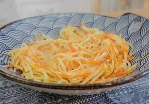 1.土豆洗淨,削皮。切成小片後細細切絲。胡蘿卜同理切成細絲。