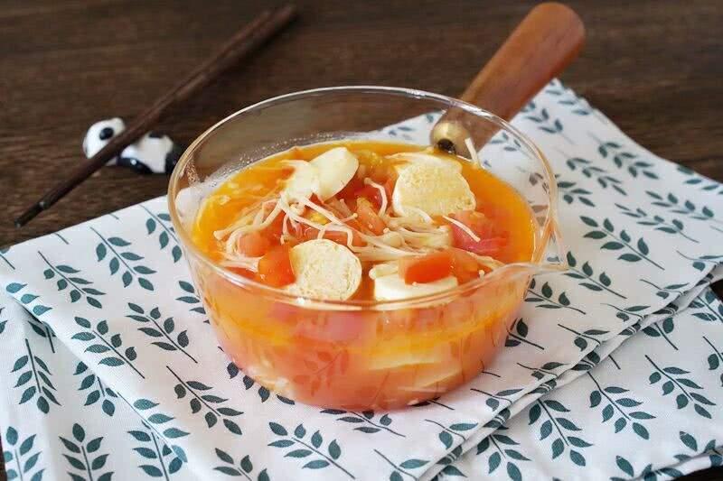 2.番茄洗凈,切成小塊,放入鍋裡炒軟。
