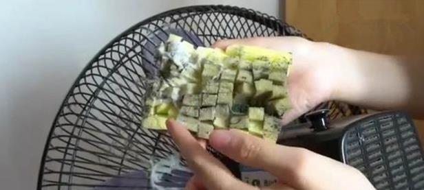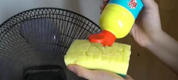 只需要準備一個長方形海棉,然後用一把小刀,將海棉用十字劃出刀花,切成正方形的小塊塊兒的(如下圖所示),然後擠適量洗潔精,再撒一些水到海棉上,這樣,我們的「清潔神器」就做好了,一起來看看效果吧!