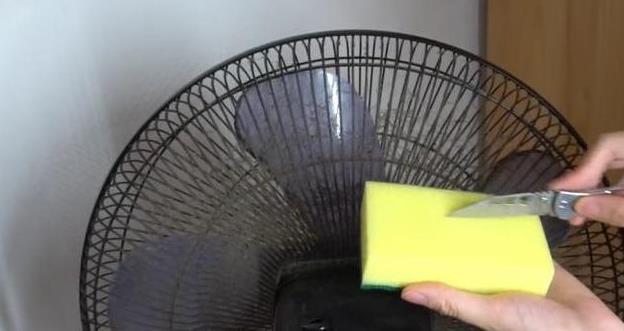 把海綿一翻麵,天啊是不是很可怕,上麵已經沾滿一層厚厚的灰,接著我們再看看風扇的根部,用改造過的海棉去擦拭,同樣非常乾淨,而且不會傷害到外網子、以及風扇葉。