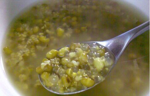 這樣熬出來的湯,顏色碧綠,比較清澈。喝的時候就沒有必要將豆也一起吃進去,就可以達到很好的消暑功效。如果是為了清熱解毒,最後把豆子煮爛。這樣的綠豆湯的色澤渾濁,消暑功效較差,但清熱解毒功效更強。