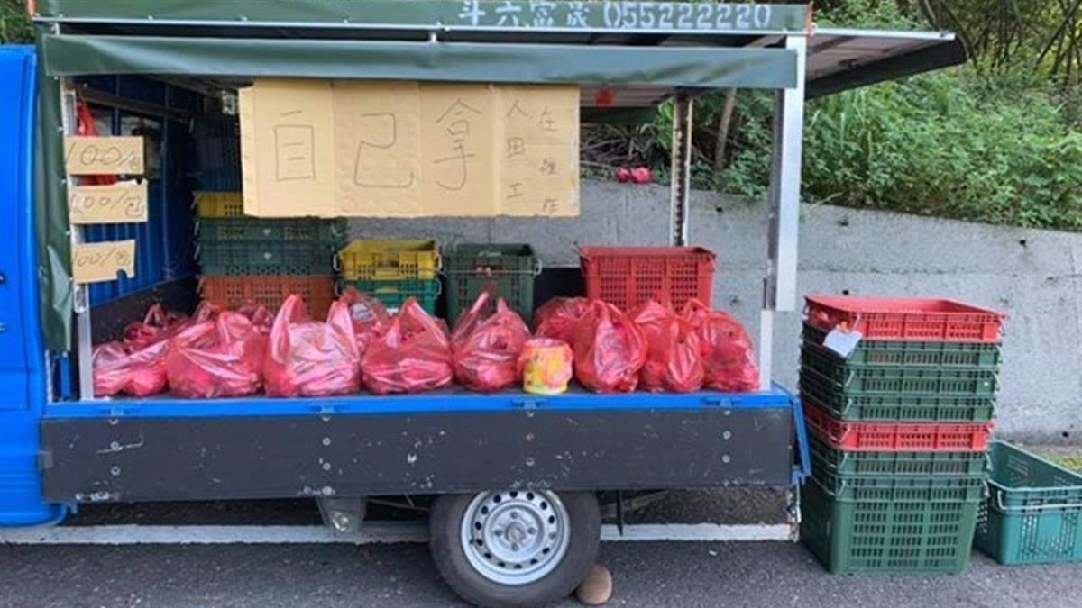 在買東西的時候,通常店家都會要求「一手交錢、一手交貨」,即使是很多傳統市場或是賣家,如果當下沒有拿到錢,也會希望可以寫下單據「賒帳」,免得到時候拿不回錢,讓自己虧本,不過有些店家主打「誠實商店」,也就是沒有人顧店,將標價寫下後,客人看到喜歡的就可以自己拿,再自己投錢到錢箱裡麵,雖然立意良善,卻非常考驗民眾的良心;日前就有一名水果老闆,因為還有田裡的工作要完成,提著一袋袋的紅龍果放在貨車上後,自己就跑走了,讓經過的路人看到都愣了一下。