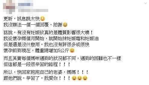 接著原PO繼續表示,其實每個媽咪遇到的狀況都不同,遇到的困難也不一樣,但對所有媽媽而言,懷孕都是一段很辛苦的路程,最後她也呼籲大家,「所以,快回家抱抱自己的老婆,媽媽,跟她們說辛苦了、我愛你。」