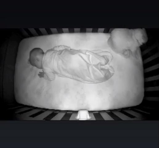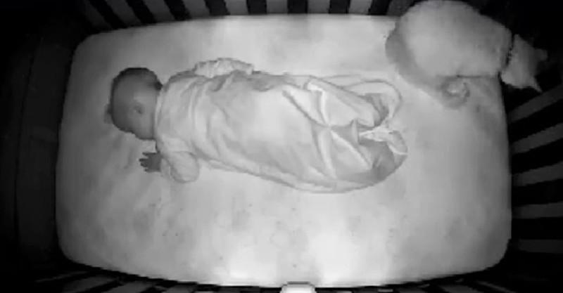 當小寶寶海柔(Hazel)第一次回到家時,桑尼表現得完全不感興趣,「牠就嗅了嗅寶寶,然後就走開去吃牠的晚餐了。」就這樣過了幾個月,大人們見桑尼似乎還是跟寶寶不太親近,本來還有點擔心,沒想到這天當爸媽看了嬰兒房裡的監控畫麵,忍不住大吃一驚!
