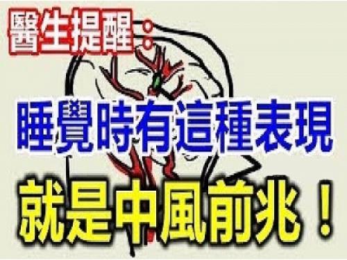 凡出現以上徵兆之一者,都應及早檢查、中風前兆早防早治。另外,我們也可以通過睡眠表現來判斷腦卒中前兆: