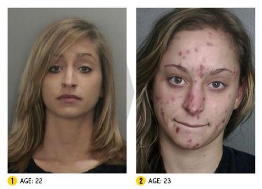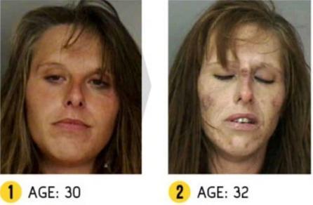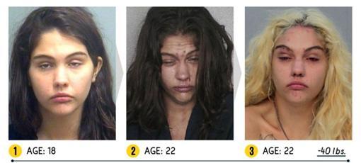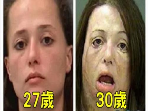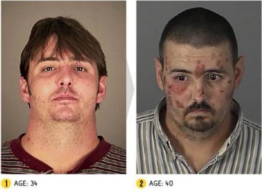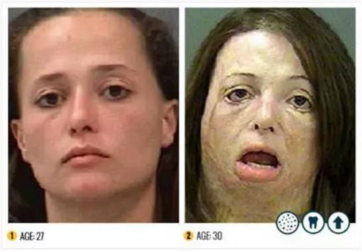 近日美國一家醫療中心提供吸毒者吸食冰毒前後的對照圖,