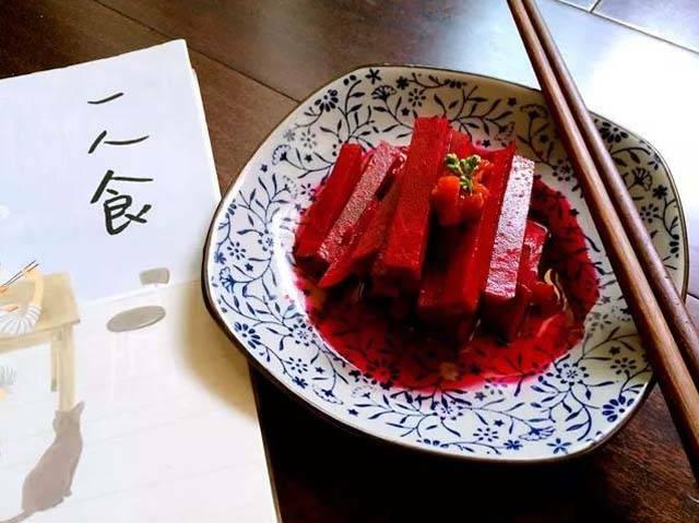 材 料:甜菜根1個,胡蘿蔔半根,白芝麻、花生仁、鹽、橄欖油、醋、黑胡椒粉適量步 驟:1、甜菜根去皮刨成絲。2、胡蘿蔔去皮刨成絲。3、花生仁烤5分鐘去外皮;碗中加熟白芝麻、醋、黑胡椒粉、鹽,淋入橄欖油。4、甜菜根絲和胡蘿蔔絲拌勻。5、倒入花生仁、拌好料汁拌勻即可。5 糖醋甜菜根