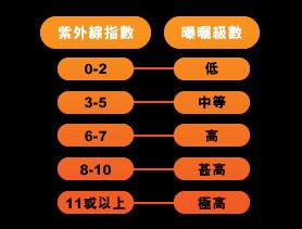 太陽照射出的紫外線能夠滲透進皮膚,如果過度的曝曬就會使細胞受到傷害,不僅會讓皮膚發紅、曬傷,更會讓皮膚快速老化,長期累積下來得到皮膚癌的機率也會大大提升,因此建議在曝曬級數高的白天出門,一定要記得塗抹防曬產品,或是使用其他遮陽工具。