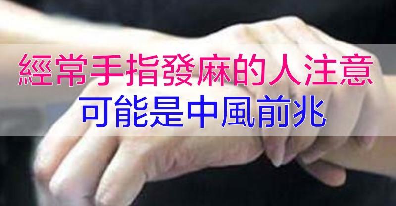 手指發麻可能是中風前兆。如果是手指經常發麻的人,就需要 警惕中風,手指發麻是中風較為常見的早期徵兆,常見於中老年人,如果40歲以上的中年人,除了手指發麻,還經常出現頭痛、眩暈、頭重腳輕、舌頭發脹等症狀,平時有高血壓、高血脂、糖尿病等疾病,一定要多加注意。