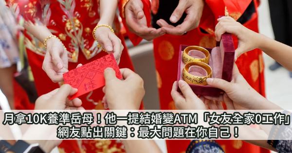 雖然未來嶽父、嶽母全靠原PO與女友養,但一點也沒有阻止他想結婚的念頭,